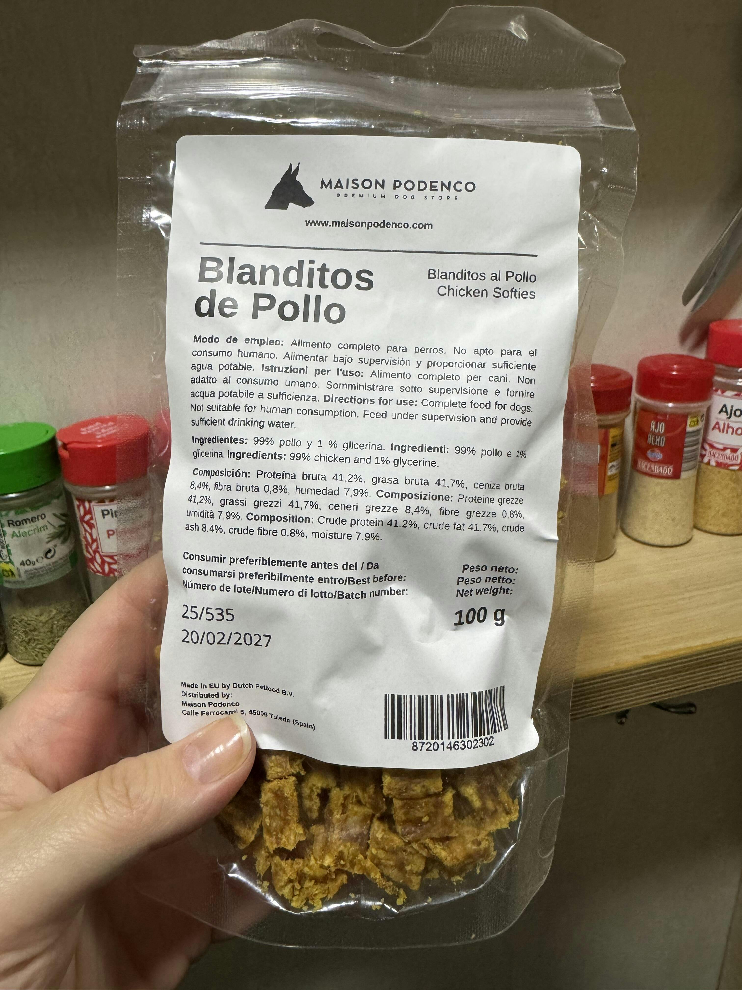 Este snack fue creado para dueños exigentes y perros aún más exigentes. Con un 99% de pollo, es suave al tacto, intenso en aroma y delicioso al gusto. Cada bocado está pensado para reforzar hábitos positivos sin comprometer la salud.